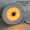 Schließe das mitgelieferte USB-C Kabel an und stecke den Stecker in die Steckdose . Wenn die Kontrollleuchte grün leuchtet, ist die Lampe vollständig aufgeladen.